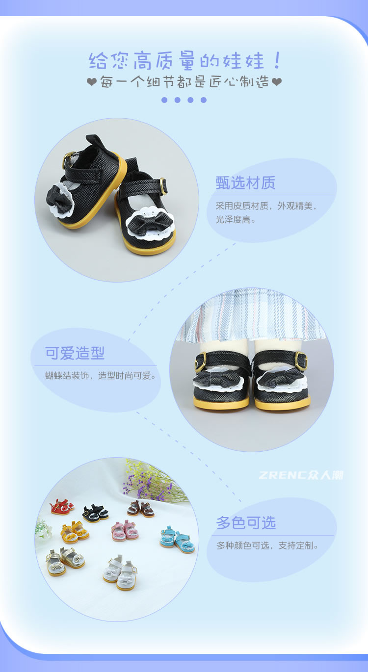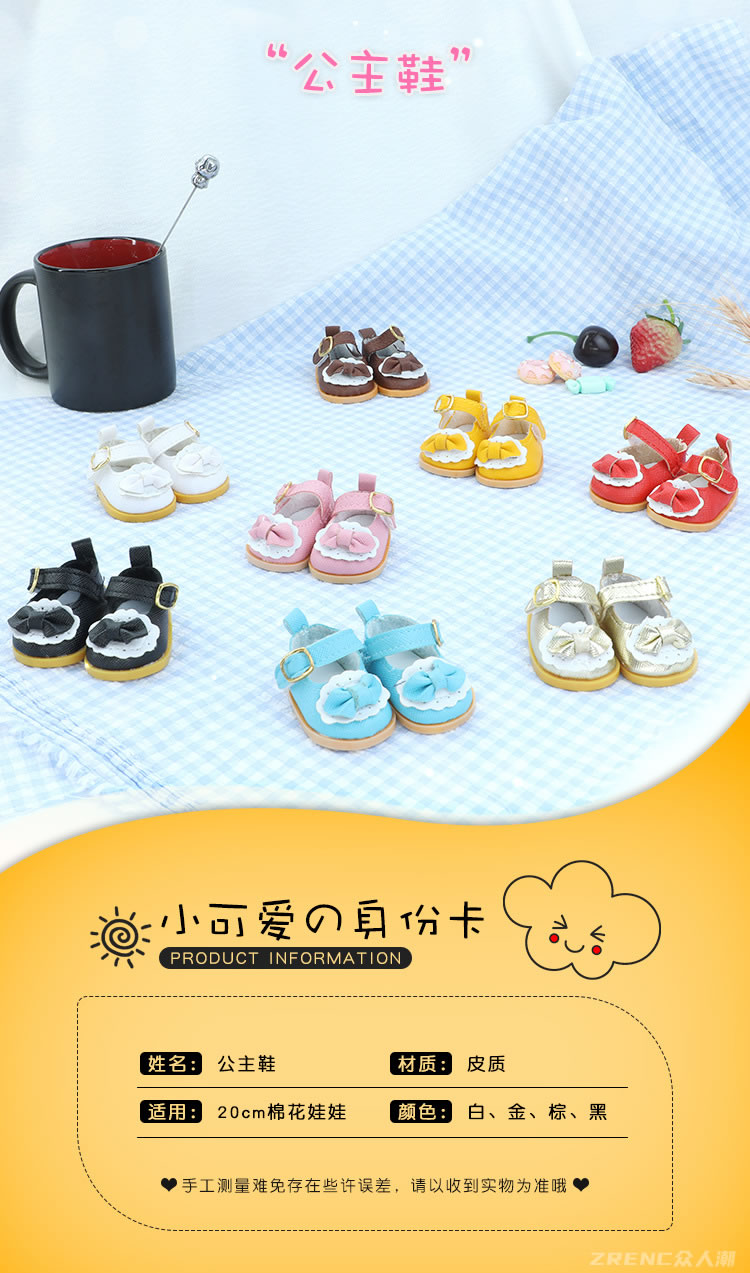 ZRENC众人潮 公主鞋 白红黑金粉棕色 适合20CM棉花娃娃女款换装玩